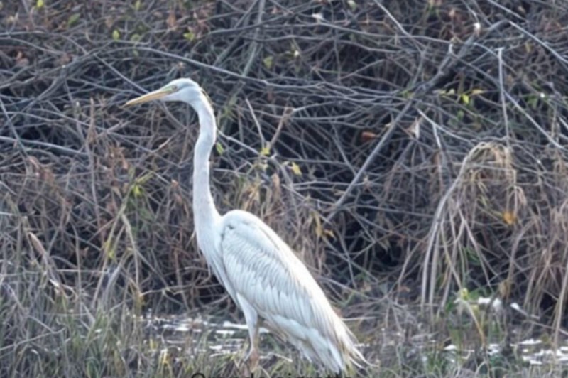 Bonjour, C'est un oiseau très intéressant ! Je pense qu'il s'agit plutôt d'un héron cendré avec un défaut de pigmentation. Pourriez-vous ajouter d'autres photos en modifiant l'exposition (en sous-exposant) pour illustrer ce joli cas ? Merci de l'avoir partagé.